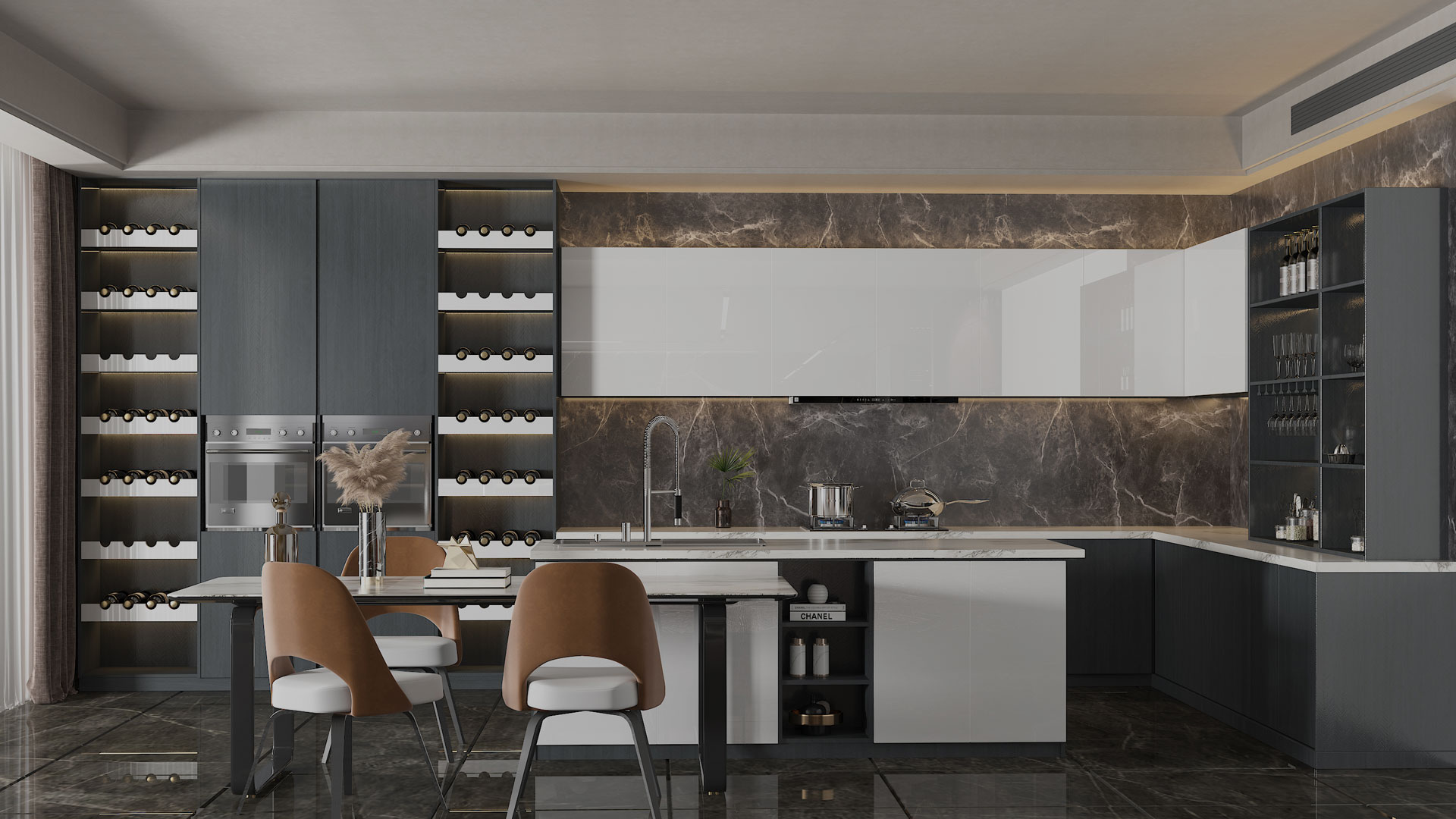 本案例是采用欧洲克诺斯邦板材烟熏榆色,打造的全屋定制案例