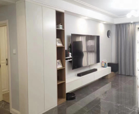 地面颜色确定情况下,选择了以百搭白色及木纹色为主的定制家具颜色