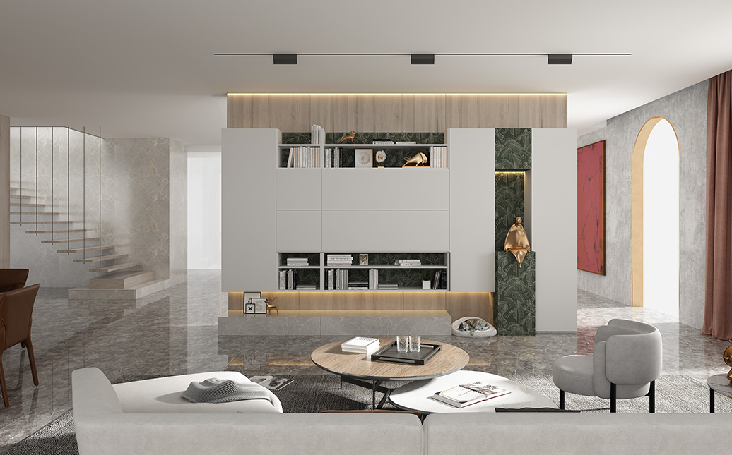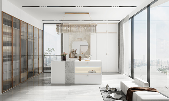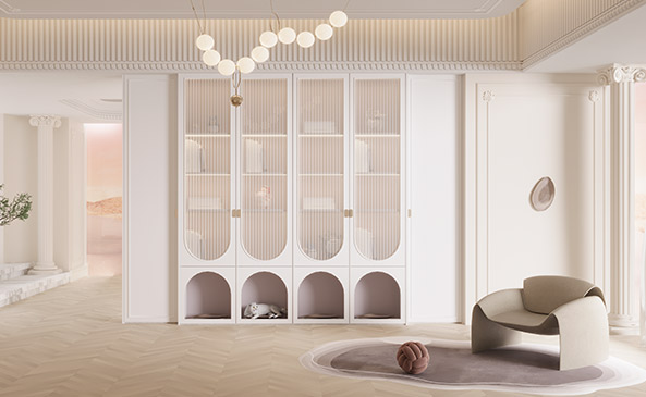 本套案例中,均采用欧洲克诺斯邦板材前白色作为定制家具主色调